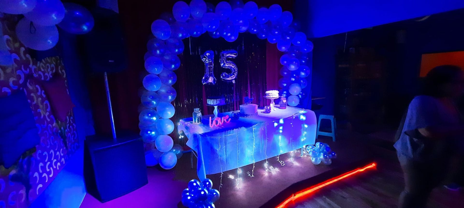 - Escenario con sistema de audio stereo y luces.